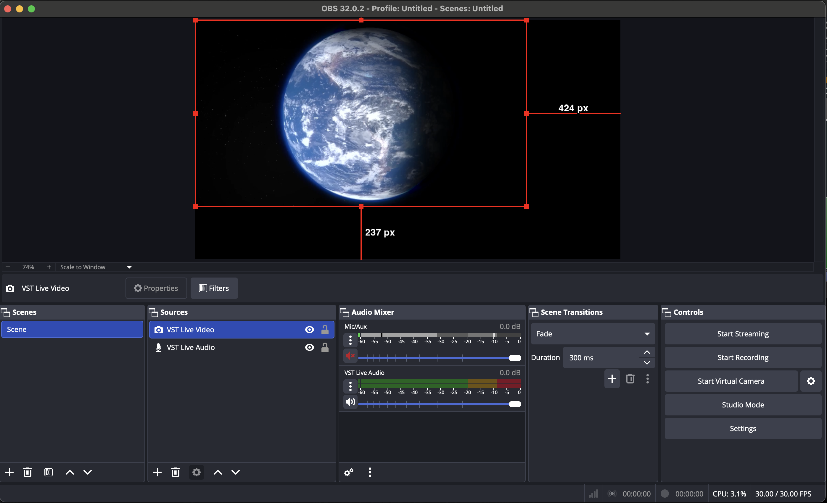 OBS is now ready to connect to VST Live and will automatically receive audio and video as soon as VST Live is running.